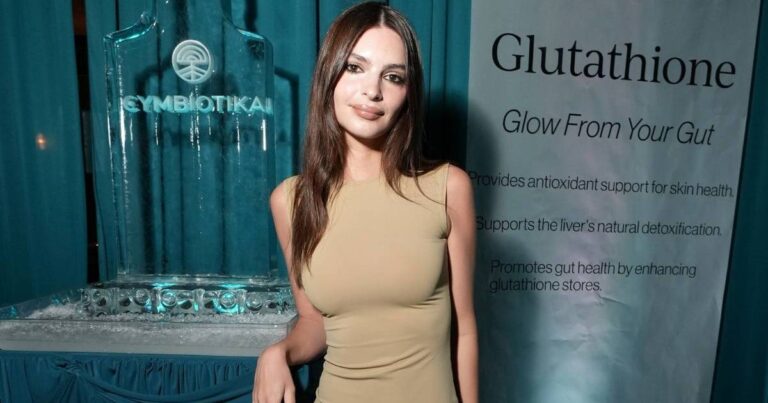 Emily Ratajkowskis Slip-Dress wird von Schnüren gehalten – Cymbiotika